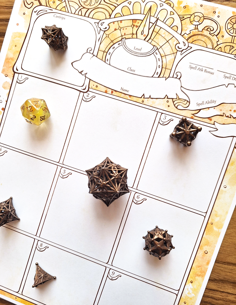 Includes Spell Sheet and Extra Sheet (for inventory/backstory/etc)