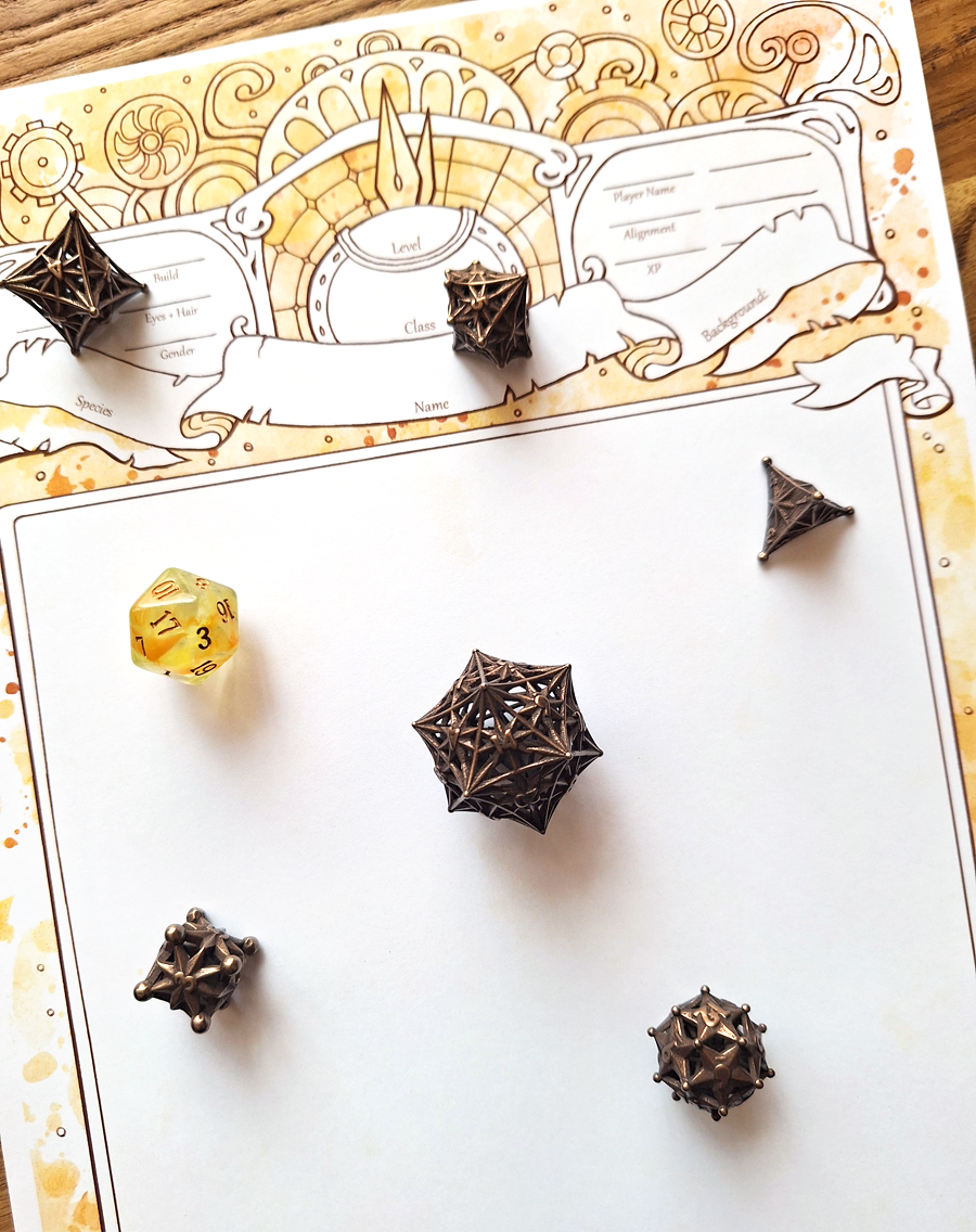 đź–¤The yellow dice are from Little Dragon Corp. The metal dice were 3D printed and I can't find the seller!