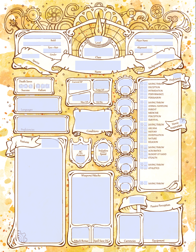 Includes Spell Sheet and Extra Sheet (for inventory/backstory/etc)