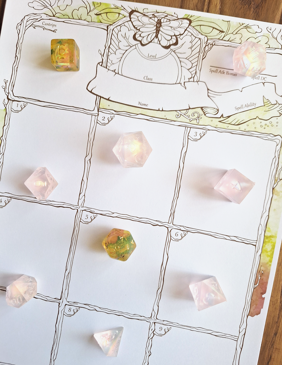 🖤 Floral resin dice by Lessamao, Pink sharp edge dice by Kraken.