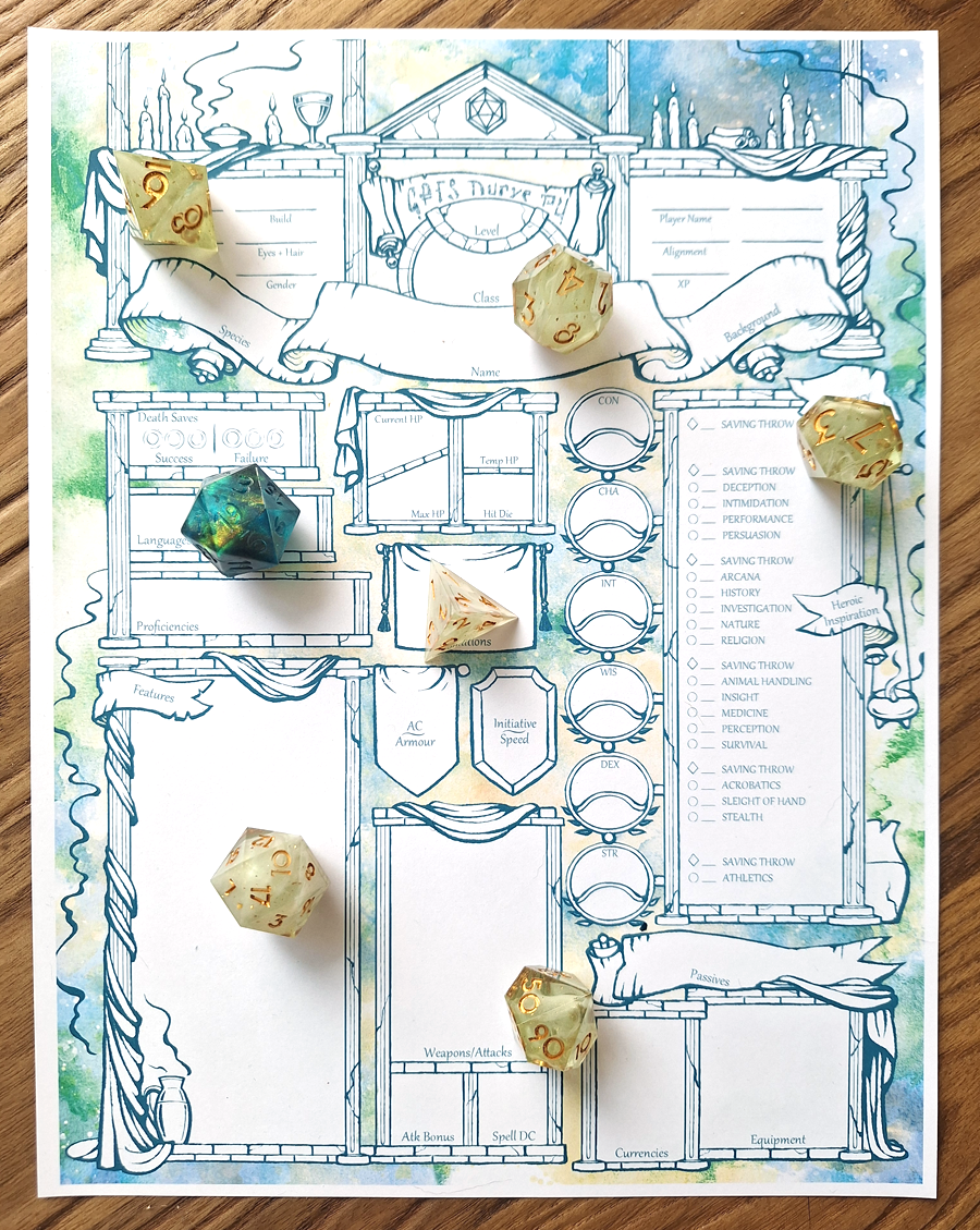 Includes Spell Sheet and Extra Sheet (for inventory/backstory/etc)