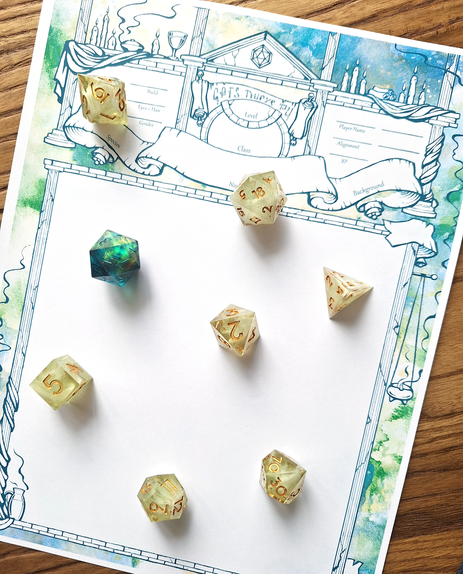 🖤The Frosted Glass D20 is from Urwizards, the rest of the dice are from Dispel.