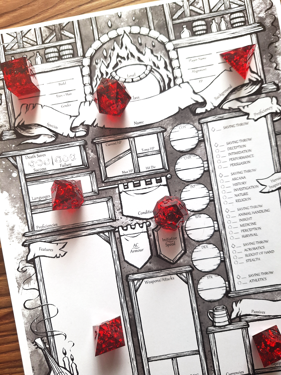 Digital Download character sheets for D&D 5e.