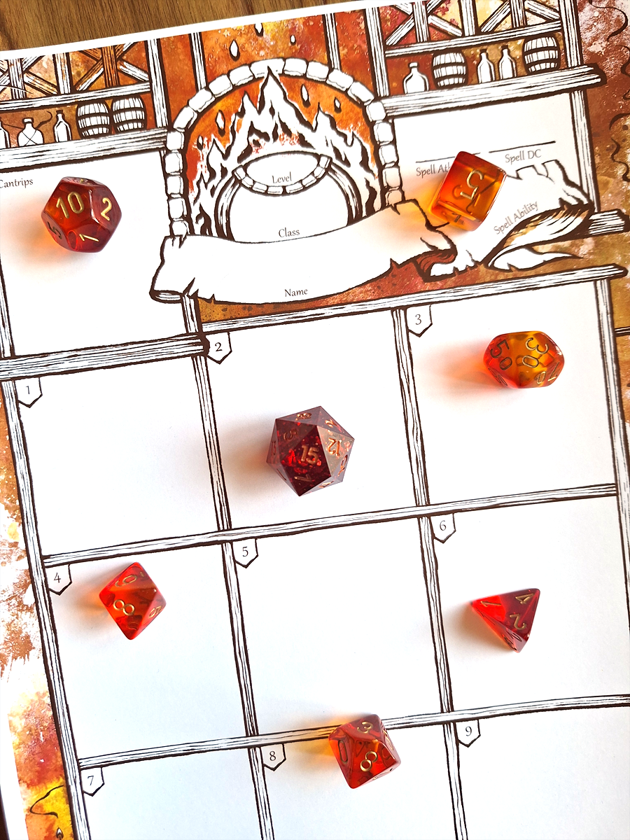 Includes Spell Sheet and Extra Sheet (for inventory/backstory/etc)
